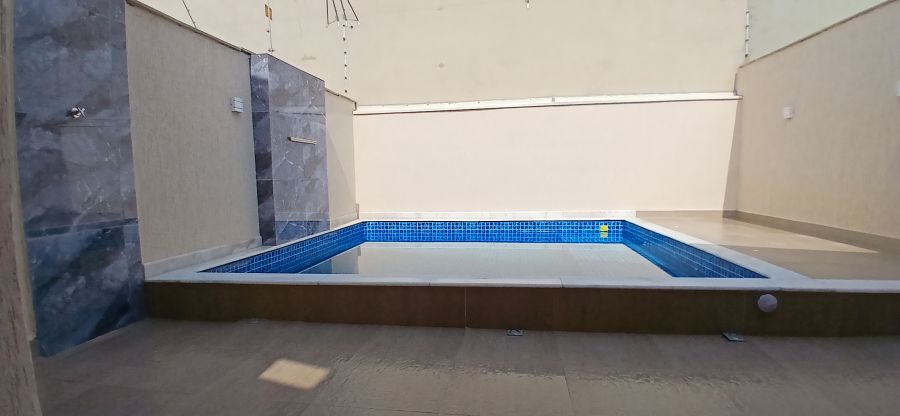 Piscina 4x4m com LED, cascata e banco molhado